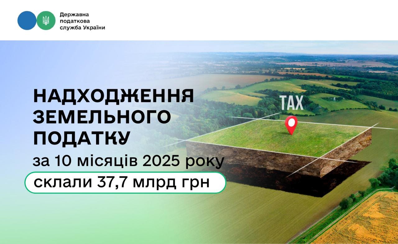 • Податок на землю: за 10 місяців третину земельного податку сплатили платники Дніпропетровщини та Києва 26.11.2025
